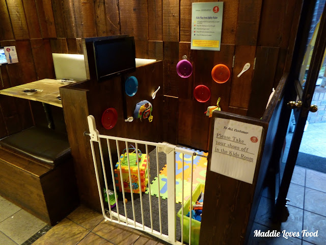 While the special kid’s corner attracts the young ones, sake connoisseurs can appreciate the ornate, backlit drinks display which separates the kitchen from the dining space.
